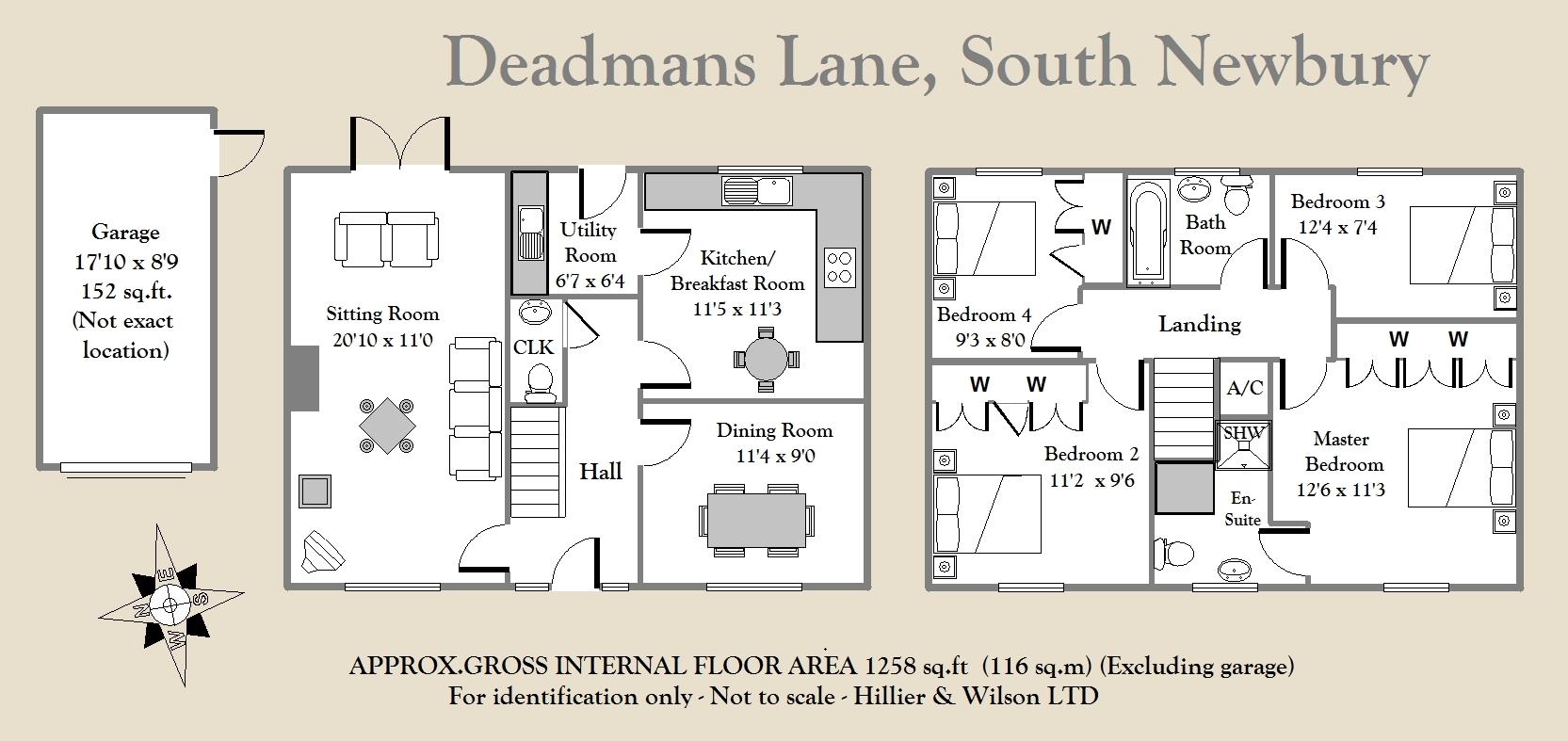 A beautifully presented four bedroom detached family home, built by David Wilson Homes located on the south side of Newbury, within the catchment area of Park House School. The property sits on a corner plot and benefits from gas central heating, uPVC double glazing, off road parking and a garage. The ground floor comprises entrance hall, cloakroom, sitting room, dining room, kitchen/breakfast room and a utility; whilst upstairs there is a master bedroom with en-suite shower room and built-in wardrobes, three further double bedrooms (two of which have built-in wardrobes) and a family bathroom. Externally, there is a well-maintained, enclosed rear garden which is mainly laid to lawn with mature flower bed borders and a patio seating area, whilst to the front of the property there is off road parking via a driveway. Deadmans Lane is conveniently located for Newbury Retail Park, historic Greenham Common and Newbury town centre, which is just a short drive away. There are also excellent road communications with easy access to the A4, A34 and M4 at Junction 13 and A339, M3 at junction 6.