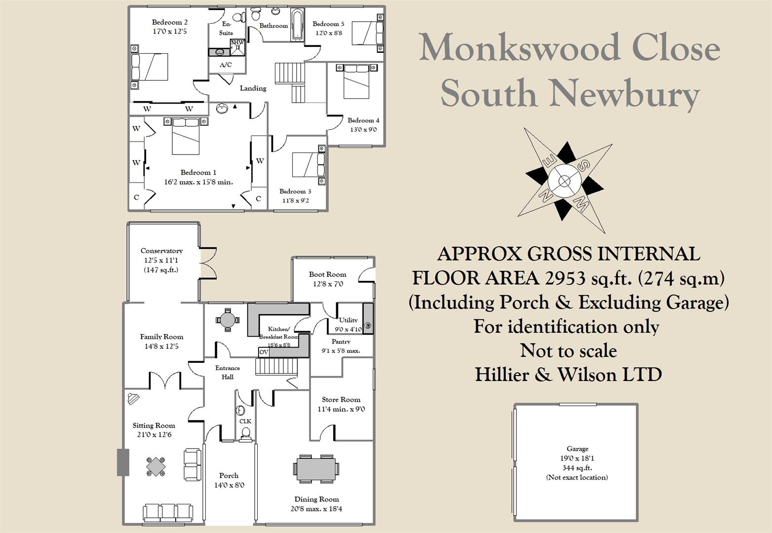 A substantial five bedroom family home located in the sought after Wash Common area of south Newbury, close to a local parade of shops. The property boasts spacious accommodation measuring 2,953 sq.ft in size as well as large corner plot, whilst other benefits include gas central heating, majority double glazing, double garage and off road parking. The ground floor comprises porch, entrance hall, cloakroom, sitting room, family room, conservatory, dining room, kitchen/breakfast room, boot room, utility, pantry and store room. Upstairs there is a principal double bedroom with built-in wardrobes and wash basin, a guest bedroom with en-suite shower room, three further double bedrooms and a family bathroom. Externally, there is an enclosed south easterly facing rear garden which has a lawn area, swimming pool and patio seating. To the front of the property is a double garage and off road parking via driveway. Monkswood Close is ideally located close to all the amenities Wash Common has to offer, including doctor s and dentist s surgeries and several convenience stores, whilst Newbury town centre and mainline railway station are just a short drive away. The property also falls within the catchment area of the highly regarded John Rankin and St Barts schools.