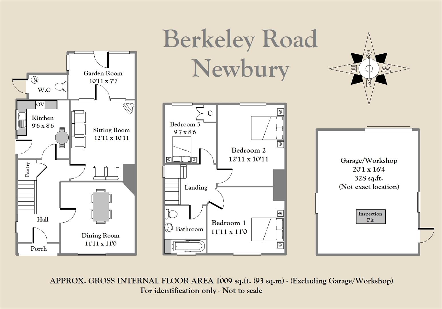 A beautifully presented three bedroom family home located in the sought after West Fields area of Newbury, just a stone s throw from the town centre and railway station. The property offers potential to extend (subject to the usual consents) whilst other benefits include gas central heating, majority uPVC double glazing, large garage/workshop/outbuilding and off road parking to the front and rear. The ground floor comprises porch, entrance hall, dining room, sitting room, garden room and modern kitchen. Upstairs, there are three bedrooms and a modern family bathroom. Externally there is a well-kept, south facing rear garden which is mainly laid to lawn with mature borders, a large garage/workshop/outbuilding with inspection pit and off road parking beyond gates, whilst to the front of the property there is driveway parking. Berkeley Road is within the West Fields area of town, a short walk from the train station as well as the shops of the town centre. The property also falls within the catchment area of the highly regarded St John s and St Bart s schools.