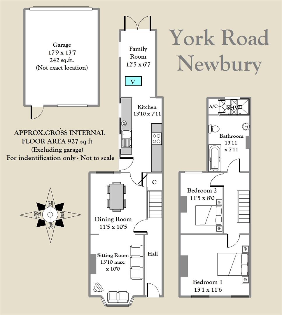 An immaculately presented Victorian end-of terrace house, located on a popular residential road on the south side of Newbury, within walking distance of the town centre and railway station. The property benefits from gas central heating, uPVC double glazing, garage and off road parking. The ground floor comprises entrance hall, sitting room with feature fireplace and gas fire, dining room, kitchen with underfloor heating and family room/study with French doors onto the garden. Upstairs there are two double bedrooms and a spacious family bathroom with roll-top bath and walk-in shower enclosure. Externally, the property has a gated front garden and an enclosed rear garden with patio area and lawn with flower bed border. At the bottom of the garden is a free-standing garage which is accessed by car via a lane that runs along the rear of the terrace. York Road is ideally located for Newbury town centre and mainline railway station which provides regular direct links to London Paddington taking less than an hour.