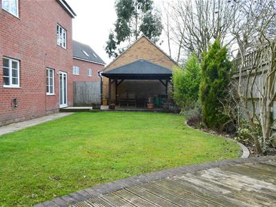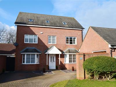 A substantial and beautifully presented five bedroom detached family house built by Bellway Homes in 2002 and located on the south side of Newbury, within the catchment area of Park House School. The property benefits from gas central heating, uPVC double glazing, private rear garden, driveway parking and garage. The accommodation is arranged over three floors with the ground floor comprising entrance hall, cloakroom, study, kitchen/breakfast room, utility and spacious sitting/dining room with French doors to the garden. On the first floor is the master bedroom with dressing area and en-suite bathroom, two further double bedrooms and a family bathroom. On the top floor there are two further spacious bedrooms and an additional family bathroom. Externally there is a block-paved driveway at the front of the house, a freestanding large garage and to the rear, a landscaped garden with impressive covered decked seating area, patio, lawn and flower bed borders. The garden backs on to shrub-land of ecological importance due to the presence of the protected Great Crested Newt. Greenham Common is a short walk from the house and provides lovely walks at all times of the year, whilst Newbury Retail Park and Tesco superstore are conveniently nearby.