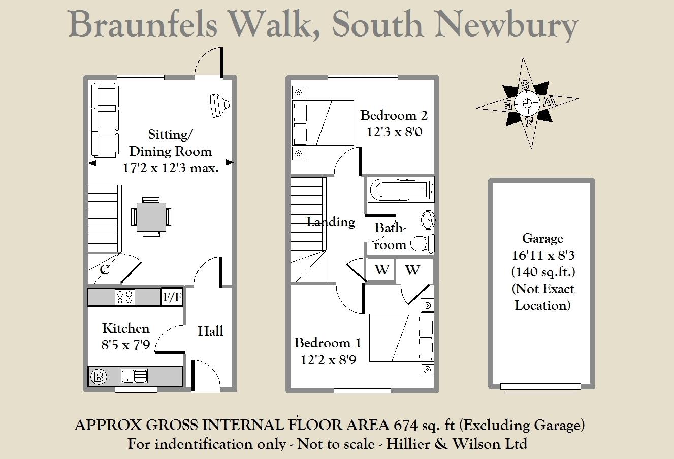 A well-presented two bedroom house located in the popular West Fields area of central Newbury, ideal for first time, investment or mature older couples looking to downsize. The property benefits from gas central heating, uPVC double glazing, driveway parking and garage. The ground floor comprises hall, kitchen, sitting/dining room, whilst upstairs has two double bedrooms, one of which has a built-in wardrobe, and family bath room. Externally, the property has a low maintenance south facing rear garden which is mostly laid to lawn, with flower bed borders, a shed and a patio area. Braunfels Walk is a quiet cul-de-sac which is very conveniently located within walking distance of Newbury town centre and railway station. Alternatively, there is a picturesque walk to the town centre along the Kennet and Avon canal which is walking distance from the house. It also falls within the catchment area of the highly regarded St John's primary and St Bart's secondary schools.