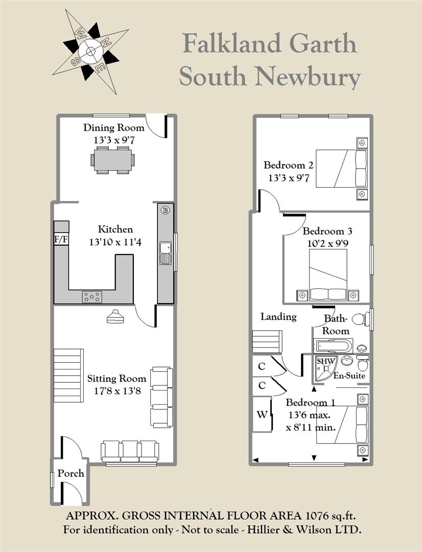 A deceptively spacious three bedroom semi-detached family home located on the south side of Newbury. The property is presented in immaculate order throughout and benefits from gas central heating, uPVC double glazing and a garage in a nearby block. The ground floor comprises entrance porch, sitting room, modern kitchen/breakfast room leading through to the dining room which has access out onto the garden. Upstairs, there is a master bedroom with built-in wardrobe/cupboards and an en-suite shower room, two further double bedrooms and a family bathroom. Externally, the property has an enclosed landscaped rear garden with a stoned seating area and a low maintenance artificial turf area. Falkland Garth is very conveniently located for the local amenities of Wash Common including dentist, doctor's surgery and convenience stores as well being within the catchment area of the highly regarded John Rankin and St. Barts schools. Newbury town centre and mainline railway station are also only a short drive away.