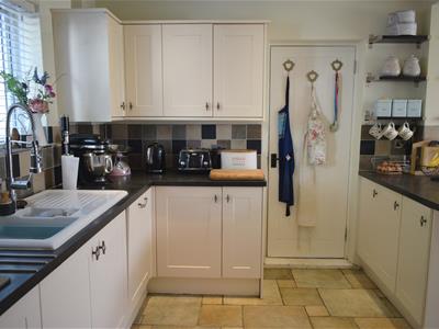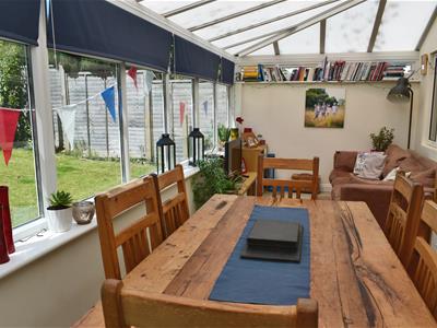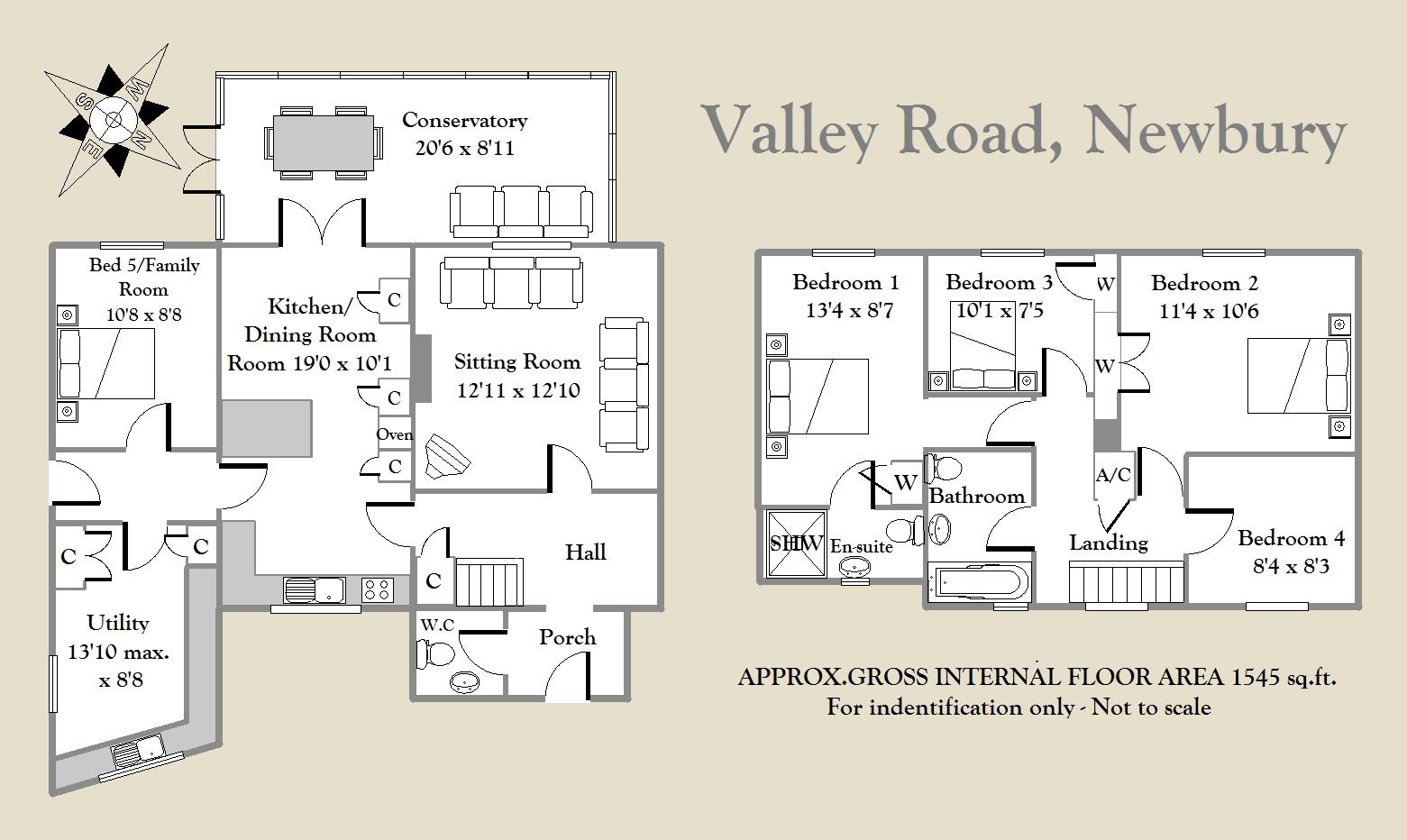 A spacious four/five bedroom extended family house located on the south side of Newbury, within the catchment area of the highly-regarded St Bartholomew s secondary school. The property benefits from a corner plot measuring 0.2 acres with a southerly aspect, driveway parking, gas combi boiler and majority uPVC double glazing. The ground floor comprises porch, cloakroom, entrance hall, sitting room with open fireplace, shaker-style kitchen/breakfast room with French doors onto a large conservatory, a lobby area, utility room and bedroom/family room. Upstairs is the master bedroom with en-suite shower room, three further double bedrooms and a family bathroom. Externally the property has block-paved driveway parking at the front of the house and an enclosed garden to the rear and side of the house with large patio, decked seating area, lawn and log cabin/home office with power and light. Valley Road is conveniently located for Newbury town centre and mainline railway station which provides regular direct links to London Paddington taking less than an hour.