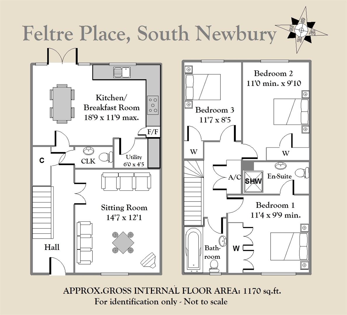 A beautifully presented three bedroom end of terrace house, built in 2005 by Miller Homes, with an enviable location just a short walk from Newbury town centre and railway station. The property benefits from off road parking, gas central heating, Upvc double glazing and a low maintenance rear garden. The ground floor comprises entrance hall, sitting room, cloakroom, spacious kitchen/breakfast room and utility room. Upstairs there is a master bedroom with built in wardrobes and en-suite shower room, two further double bedrooms and a newly fitted bathroom. To the rear of the property is an enclosed, south facing garden with shed, patio area and lawn, whilst to the front is an allocated parking space as well as visitor parking. Feltre Place is ideally located just a few minutes' walk from the railway station which provides regular direct links to London Paddington taking less than an hour. Road links are also excellent with nearby access to the A4, A34 and M4 at Junction 13. The property also falls within the catchment area of the highly regarded St. Johns and St. Barts schools.