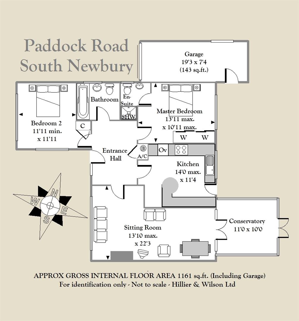 A deceptively spacious two bedroom detached bungalow, located in a popular residential road on the south side of Newbury. The property has far-stretching views over Newbury and of Donnington Castle, whilst other benefits include gas central heating, majority uPVC double glazing, driveway parking and garage. The accommodation comprises spacious entrance hall, sitting/dining room, conservatory, kitchen, master bedroom with fitted wardrobes and en-suite shower room, a further double bedroom and bathroom. Externally, there is a private rear garden which is mainly laid to lawn, bordered by mature hedges and trees. Small patio area, summer house, shed, potting shed and a greenhouse. To the front of the property, there is ample off road parking and also a garage. Paddock Road is ideally located not far from Newbury town centre and mainline railway station which provides regular direct links to London Paddington taking less than an hour.