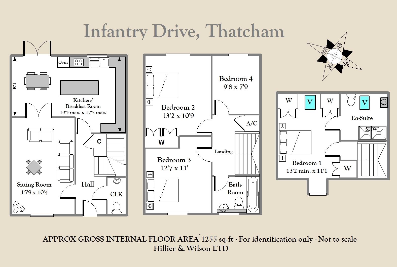 A beautifully presented four bedroom family home located in the popular Kennet Heath development of Thatcham. The property falls within the catchment area of the highly regarded Kennet secondary school, whilst other benefits include gas central heating, uPVC and separate garage. The ground comprises entrance hall, cloakroom, sitting room and modern kitchen/breakfast room with double doors on the garden. On the first floor, there are two double bedrooms (one of which has built-in wardrobe), a further bedroom and a modern family bathroom; whilst on the second floor is a master bedroom with modern en-suite shower room and built-in wardrobe. Externally, there is a low-maintenance landscaped rear garden which consists predominantly of artificial turf with a paved seating area and flower bed borders; whilst there is also a side gate leading to the garage and an allocated parking space. Infantry Drive is located just a few minutes walk to the mainline railway station which has direct links to Reading, Newbury and London Paddington. Thatcham Lakes is also a short drive away, an area of which is of outstanding importance for nature conservation providing lovely walks at all times of the year.