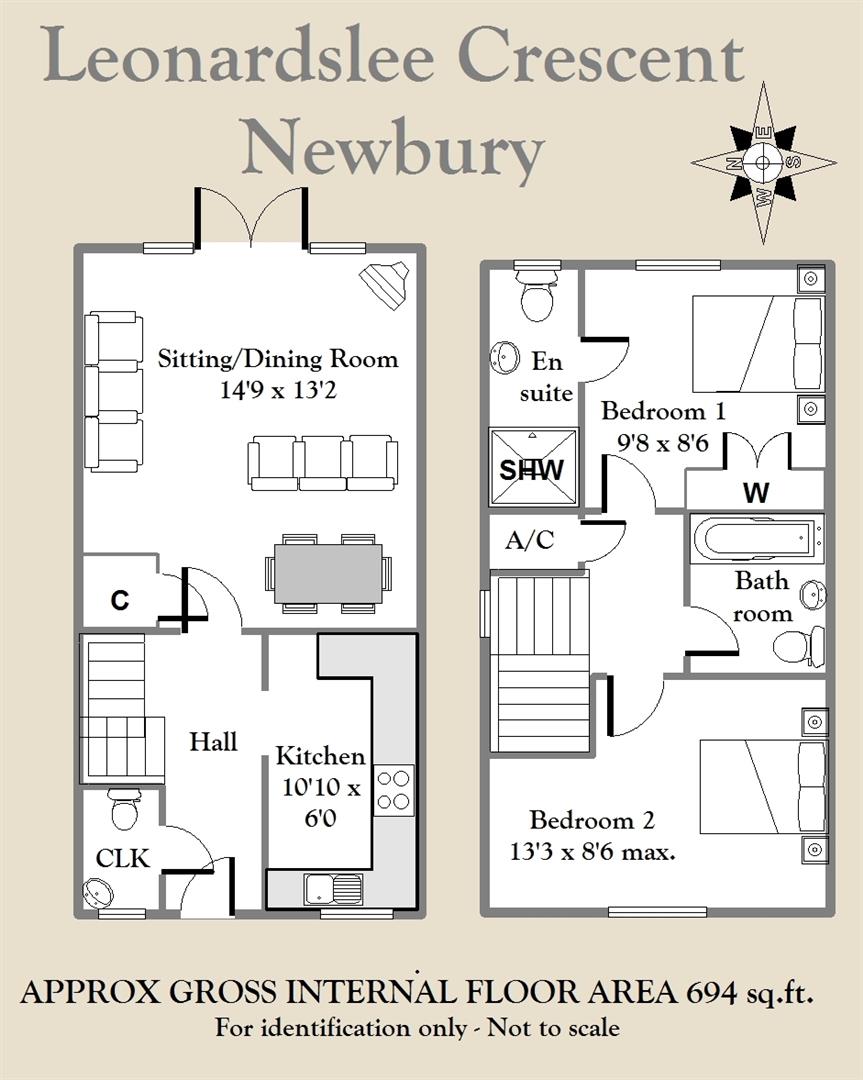 A well-presented two bedroom house located to the north east of Newbury on the popular Riverside Gardens development. The property is ideal for first time or investment buyers, whilst other benefits include gas central heating, double glazing and off road parking. The ground floor comprises entrance hall, cloakroom, kitchen and sitting/dining room with double doors onto the garden; whilst upstairs there is master bedroom with en-suite shower room, a second double bedroom and a bathroom. Externally, there is a low maintenance rear garden with artificial turf, a patio area and a side gate leading through to an allocated parking bay, whilst to the front there is also an allocated parking space. Leonardslee Crescent is ideally located with both Newbury and Thatcham town centres nearby, both of which have mainline railway stations with direct lines to Reading and London Paddington. Road communications are excellent with the A4, A34 and M4 and M3 motorways close by. Newbury and Thatcham also have a wide range of shops, banks, restaurants and supermarkets.