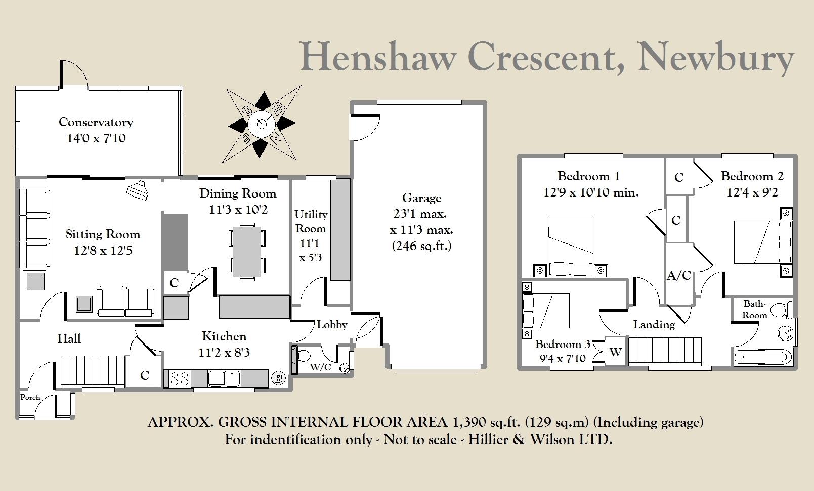 A well-presented three bedroom semi-detached family home located in a popular area of south Newbury, within the catchment area of the highly regarded John Rankin and St. Barts schools. The property offers potential to extend (subject to the usual planning consents) whilst also benefiting from gas central heating, uPVC double glazing and garage. The ground floor comprises porch, entrance hall, sitting room, conservatory, dining room with access onto the garden, kitchen, W.C and utility room; whilst upstairs there are three double bedrooms (all of which have built-in cupboards) and a family bathroom. Externally, there is an enclosed rear garden which is mainly laid to lawn with mature tree/hedge borders and a patio area whilst to the front, there is off road parking via driveway. Henshaw Crescent is conveniently located for the shops and amenities of Wash Common within walking distance, whilst Newbury town centre and mainline railway station are just a short drive away.