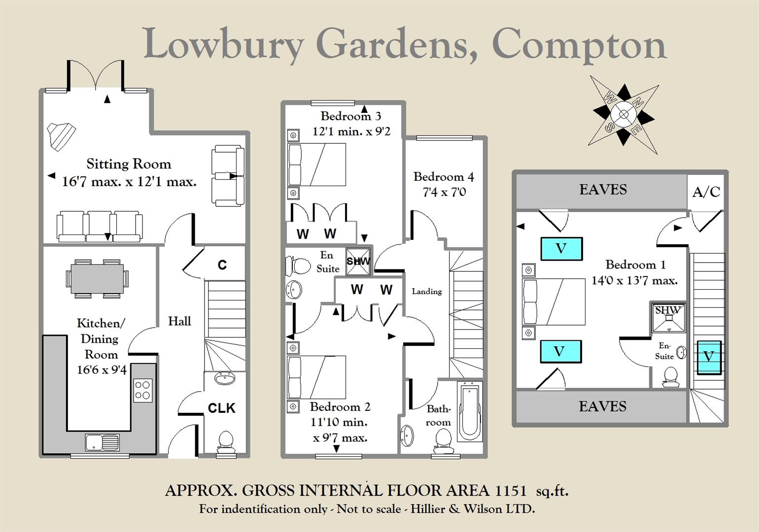 A beautifully presented four bedroom family home located in one of the most favoured villages north of Newbury. The property is heated by an economical Air Source Heat Pump system, whilst other benefits include uPVC double glazing and off road parking. The accommodation is arranged over three floors; the ground floor comprises entrance hall, cloakroom, kitchen/dining room and sitting room with French doors onto the garden. On the first floor, there is a double bedroom with en-suite shower room and built-in wardrobes, a second double bedroom with built-in wardrobes, a further bedroom and a family bathroom; whilst on the top floor there is a master bedroom with en-suite shower room and eaves storage facility. Externally there is a low maintenance garden which is mainly laid to lawn with a patio area and to the rear, there is off road parking via two allocated parking spaces. Compton is a village situated in an Area of Outstanding Natural Beauty, with excellent road links to nearby Reading and Newbury. The village has a Parish Church, general store, doctor's surgery and is within the catchment area of the reputable and highly regarded Downs secondary school. There is very easy access to the A4, A34 and M4 at Junction 13.