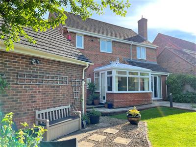 A four bedroom detached family home located on the popular Manor Park development on the north side of Newbury. The property benefits from gas central heating, uPVC double glazing, off road parking and a large garage measuring in 305 sq.ft. in size. The ground floor comprises entrance hall, cloakroom, family room/study, sitting room, dining room/conservatory with access onto the garden, utility room and kitchen/breakfast room. Upstairs, there is a master bedroom with en-suite shower room and built-in wardrobe, two further double bedrooms (both of which have built-in wardrobes), a home office/bedroom and a family bathroom. Externally, there is well-maintained, enclosed rear garden which has both lawn and patio seating areas and is bordered by mature flower beds/shrubs; whilst to the front, there is off road parking via driveway. Laud Close is conveniently located with good road links nearby including the A4, A34 and M4 motorway. Newbury town centre is a short drive away as is the mainline railway station with provides regular direct links to London, Paddington taking less than an hour. NO ONWARD CHAIN