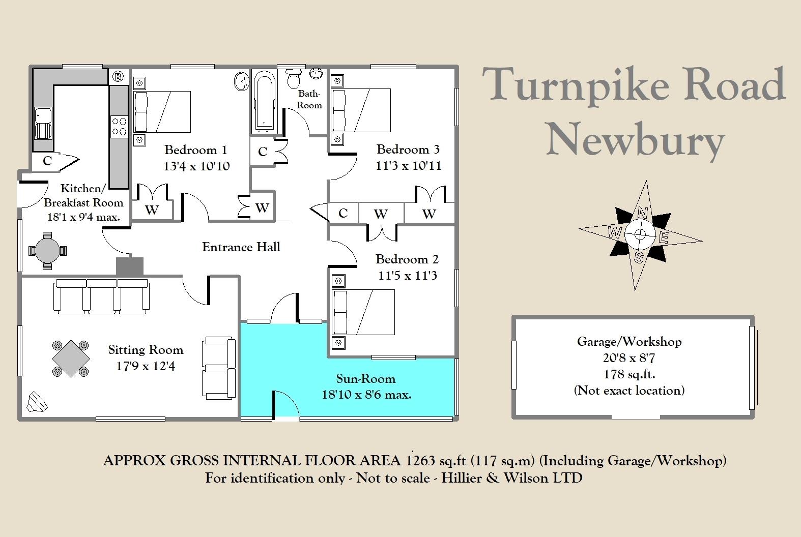 A three bedroom detached bungalow boasting a generous sized plot located on the north side of Newbury, just a short drive from Newbury town centre. The property is in need of modernisation and offers a mass of potential, whilst other benefits include gas central heating, double glazing, off road parking and a garage/workshop. The accommodation comprises sunroom, entrance hall, dual aspect sitting room, kitchen/breakfast room, three double bedrooms in which all have built-in wardrobes and a bathroom. Externally, there is an enclosed rear garden which is mainly laid to lawn with mature hedge/tree surround, a greenhouse and a detached garage/workshop. To the side of the property, there is off road parking via driveway behind a 5 bar gate and access to the garage/workshop. Turnpike Road is conveniently located for the A4, the M4 at junction 13 and the A34 are also easily accessible. Newbury train station provides direct links to London Paddington taking less than an hour. NO ONWARD CHAIN