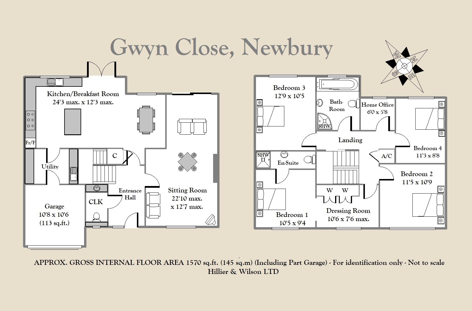 A beautifully presented four bedroom detached family home with an enviable location on a highly sought-after residential road in the south of Newbury and within the catchment area of the highly regarded St. Barts schools. The property offers spacious living accommodation whilst other benefits include gas central heating, uPVC double glazing, off road parking and garage. The ground floor comprises entrance hall, cloakroom, sitting room, modern kitchen/breakfast room with Quartz work surfaces and built in appliances, and a utility room. Upstairs there is a principal bedroom with en-suite shower room and walk-in dressing room with fitted wardrobes, three further double bedrooms, a home office and a family bathroom. Externally there is an enclosed westerly facing rear garden which is mainly laid to lawn with mature flower bed borders and a patio area. To the front of the property, there is off road parking via driveway. Gwyn Close is conveniently located just a short drive from Newbury town centre and mainline railway station which provides regular direct links to London Paddington taking less than an hour.