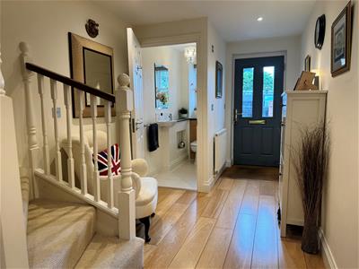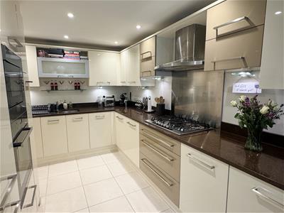 A beautifully presented five bedroom town house located in a sought after residential road on the south side of Newbury. The family residence benefits from accommodation over three floors, gas central heating, uPVC double glazing, garage and off road parking. The ground floor comprises entrance hall, cloakroom and kitchen/dining/family room with French doors out onto the garden. The first floor comprises sitting room, principal bedroom with en-suite bathroom and built-in wardrobes, and a study/bedroom with built-in wardrobe. On the top floor there are two double bedrooms (one of which has access to a storage facility), a further bedroom and a family bathroom. Externally there is a low maintenance and enclosed rear garden which has artificial turf lawn, flower bed borders and a small patio area. To the front of the property there is off road parking via driveway and a further artificial lawn area. Monkswood Close is ideally located close to all the amenities Wash Common has to offer, including doctor s and dentist s, along with convenience stores, whilst Newbury town centre and mainline railway station are just a short drive away. The property also falls within the catchment area of the highly regarded John Rankin and St Barts schools.
