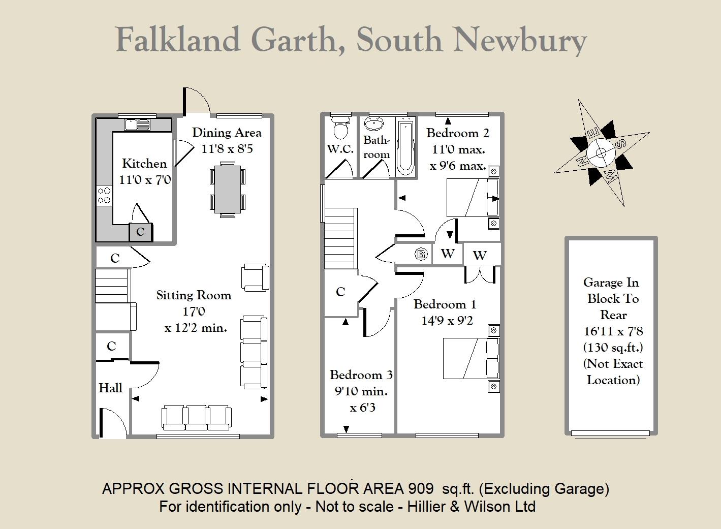 A spacious three bedroom property located in a popular area of south Newbury, located within the catchment area of the highly regarded John Rankin and St Barts schools. The property is ideal for first time or investment buyers and benefits from uPVC double glazing and garage in a nearby block. The ground floor comprises sitting room, dining area and kitchen. Upstairs there are two double bedrooms, both of which have built-in wardrobes, a further bedroom and bathroom with separate W.C. Externally there is a tiered garden which is both lawn and patio with gated access to the rear leading to the designated garage. Falkland Garth is very conveniently located for the local amenities of Wash Common including dentist, doctor's surgery and convenience stores, whilst Newbury town centre and mainline railway station are only a short drive away.