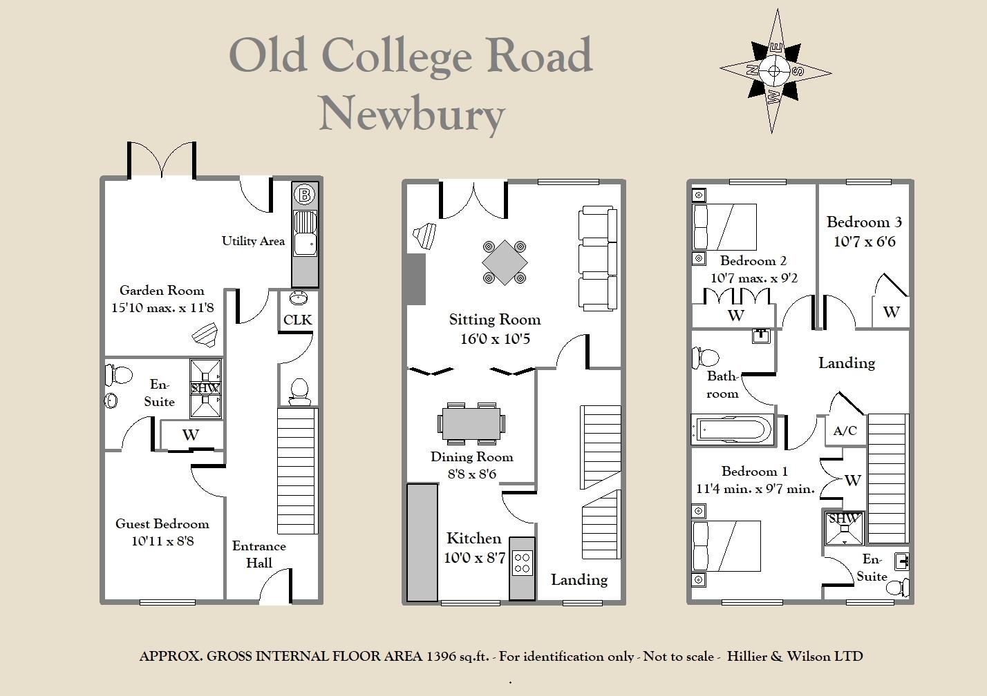 A well-presented four bedroom town house located in a sought after development on the north side of Newbury. The property offers flexible accommodation over three floors and benefits from gas central heating, uPVC double glazing, off road parking and garage. The ground floor comprises entrance hall, cloakroom, garden room with utility area and a guest bedroom with en-suite shower room and built-in wardrobe. The first floor offers sitting room with French doors onto Juliette balcony, dining room and kitchen. The top floor has a principal bedroom with en-suite shower room and built-in wardrobe, two further bedrooms with built-in wardrobes and a family bathroom. Externally there is a low maintenance rear garden with both lawn and patio areas, whilst parking is available to the rear in front of the garage. Old College Road is conveniently located a stone's throw away from Waitrose and a short walk from the shops and restaurants of Newbury town centre.