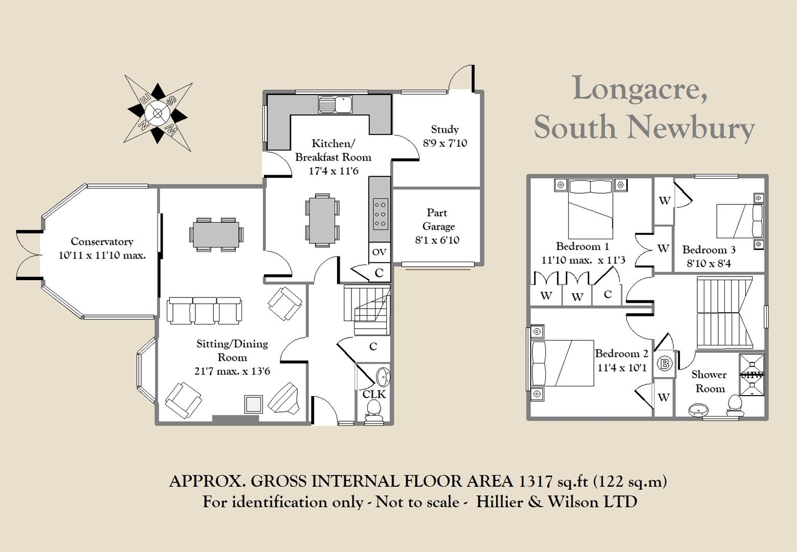 A beautifully presented, rarely available, three double bedroom detached family home located in a sought after area on the south side of Newbury. The property falls within the catchment area of the highly regarded John Rankin and St Barts schools, whilst other benefits include generous corner plot, gas central heating, uPVC double glazing, off road parking and garage. The ground floor comprises entrance hall, cloakroom, sitting room, conservatory, modern kitchen/breakfast room and study. The first floor offers three double bedrooms (all of which have built-in storage) and family shower room where a bath could be reinstated. Externally there is a well maintained rear garden which is mainly laid to lawn with partial flower bed borders and a patio seating area. To the front of the property there is off road parking via driveway and access to the part garage, ideal for storage. Longacre is ideally located not far from open countryside offering lovely walks, Newbury town centre and mainline railway station which provides regular direct links to London Paddington taking less than an hour; it also has excellent road communications with easy access to the A34 and M4.