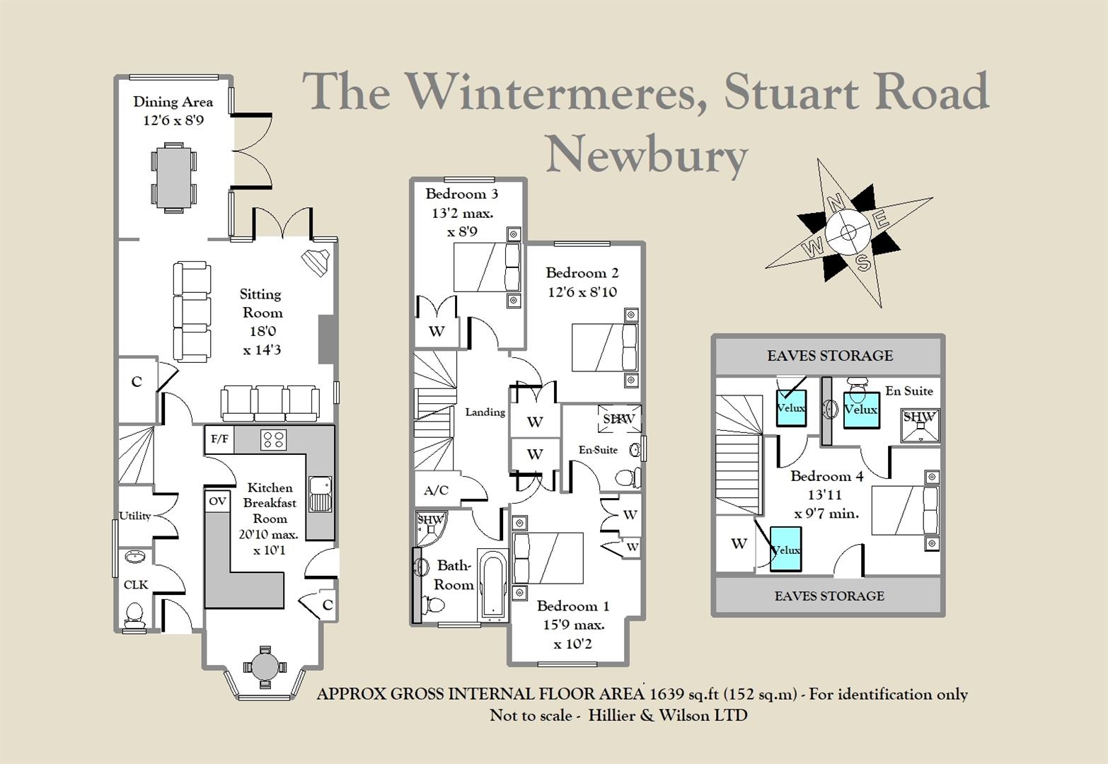 A beautifully presented four bedroom family home, modernized through out and located in a sought after no through road on the south side of Newbury. The property overlooks a playing field opposite and benefits from gas central heating, uPVC double glazing, driveway parking and an enclosed rear garden. The spacious accommodation is arranged over three floors with the ground floor compromising, entrance hall, cloakroom, utility cupboard, refitted modern kitchen/breakfast room, sitting room, and dining room with French doors onto the garden. On the first floor there is a principal bedroom with en-suite shower room and built-in wardrobes, two further bedrooms and a family bathroom. The top floor has a double bedroom with modern en-suite shower room and eaves storage. Externally there is a well-kept rear garden which is mainly laid to lawn with mature flower bed borders and both decked and patio seating areas. To the front of the property, there is off road parking via driveway. Stuart Road is ideally located, just a short walk from the local amenities of Wash Common and just a short drive away from Newbury town centre and mainline railway station which provides regular direct links to London, Paddington taking less than an hour. It also falls within the catchment area of the highly regarded Falkland and Park House schools.