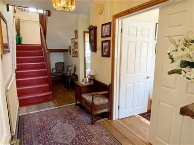 A spacious four bedroom detached family home located in a popular residential road on the south side of Newbury that falls within the catchment of both the highly regarded St John s & St Bart s schools. The property offers substantial living accommodation approaching 2,000 sq.ft in size and sits on a generous corner plot measuring approximately 1/5 acres, whilst other benefits include gas central heating, uPVC double glazing, ample off road parking and garage. The ground floor comprises entrance hall, cloakroom, dining room, sitting room, kitchen/breakfast room, utility and a family room with doors out onto the garden. Upstairs there is a principal bedroom with built-in wardrobes and en-suite bathroom with separate shower, three further bedrooms and a shower room. Externally there is a stunning, enclosed rear garden which has been beautifully maintained and boasts lawn, decked and patio areas, along with a vegetable patch, pond and outbuildings. To the front of the property there is off road parking via driveway and access to the garage. Culver Road is very conveniently located not far from Newbury town centre and mainline railway station which provides regular direct links to London Paddington taking less than an hour.