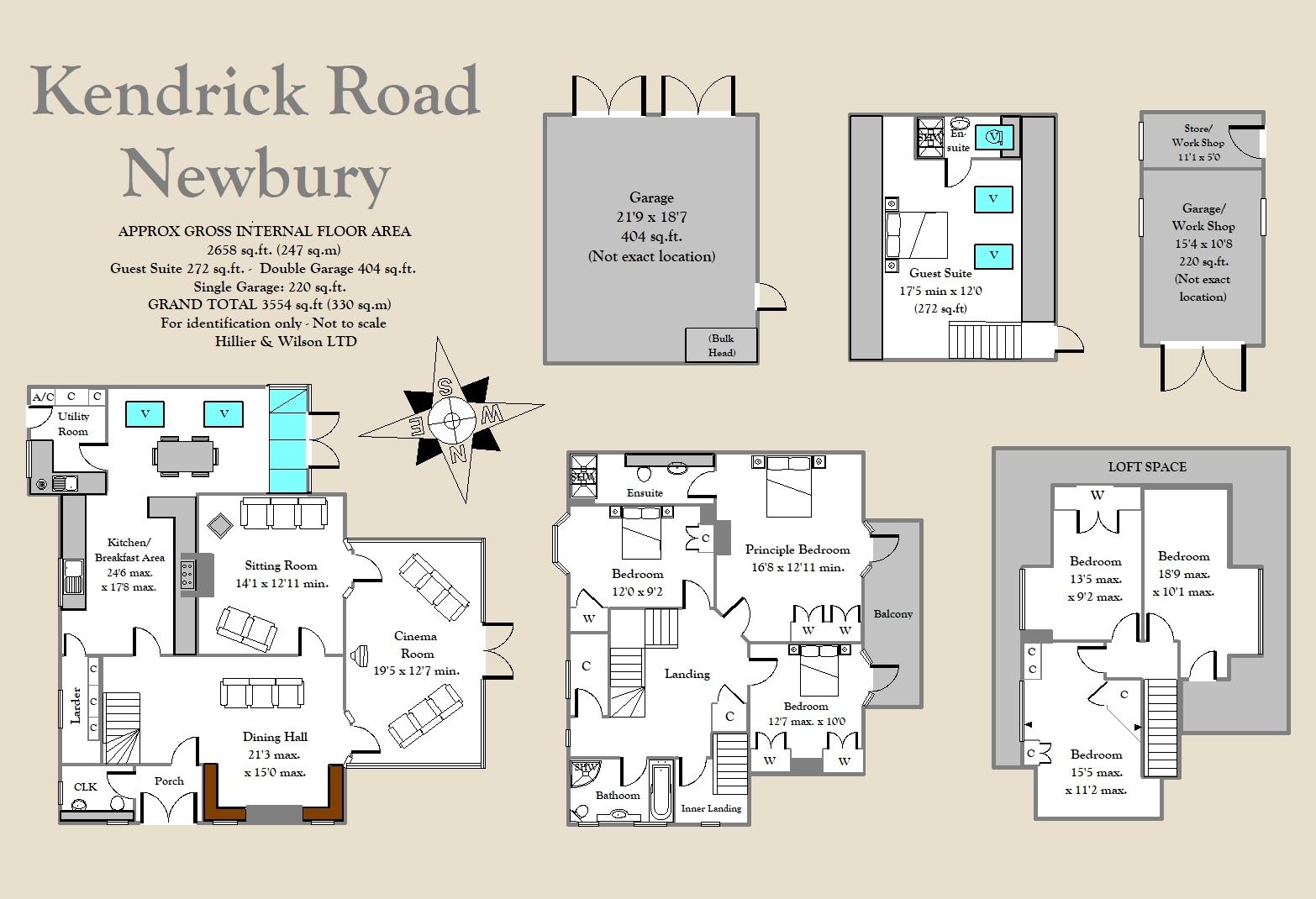 A stunning and eye-catching six/seven bedroom detached 1920's style family home, located in a highly desirable private road on the south side of Newbury. The property boasts spacious living accommodation over three floors and sits on a generous southerly facing plot measuring 0.4 acres, whilst other benefits include gas central heating, double glazing, detached double garage with guest bedroom suite and ample off road parking. The ground floor comprises porch, cloakroom, entrance dining hall, cinema room, sitting room, kitchen/breakfast area with larder cupboard and utility room. On the first floor there is a principal bedroom with en-suite shower room, fitted wardrobes and access to a balcony, two further double bedrooms, family bathroom with separate shower and inner landing leading to the second floor, whilst on the top floor, there are three double bedrooms. Externally there is a stunning rear garden which is mainly laid to lawn with mature flower beds and hedge border, then to the front of the property is a single garage, double garage with a double bedroom guest suite above and ample off road parking via driveway behind secure gates. Kendrick Road is ideally located close to the local amenities of Wash Common whilst also just a short drive from Newbury town centre and mainline railway station which provides regular direct links to London, Paddington taking less than an hour. It also falls within the catchment area of the highly regarded Falkland and Park House schools.