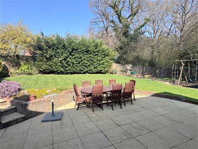 A beautifully presented and imposing five bedroom detached family home located in an executive development within the sought after village of Woolton Hill. The property offers substantial accommodation measuring 2,574 sq.ft in size and sits beside The Chase Nature Reserve, whilst other benefits include oil fired central heating, uPVC double glazing with Hillary's shutters throughout, Gigaclear FTTP full fibre, triple garage with power/light and ample off road parking via driveway. Beyond the Oak porch is the ground floor accommodation which comprises spacious entrance hall with attractive Oak balustrades, cloakroom, sitting room with open fire, family room/office, modern Ben Heath kitchen/breakfast room, conservatory/garden room, utility and boot room. Upstairs there is a principal bedroom with dressing area and en-suite shower room, a guest bedroom with en-suite shower room, three further bedrooms and a modern family shower room. Externally there is a well-kept, enclosed rear garden which is mainly laid to lawn with mature hedge and flower bed borders, a patio seating area with vegetable patch, a shed and summer house, and a second patio area leading to the triple garage. To the front of the property there is ample off road parking via driveway. Woolton Lodge Gardens is located within the popular village of Woolton Hill, a few miles south of Newbury. Woolton Hill has good amenities including a church, village hall, sports/tennis club, post office, nursery, Thorngrove School and a pub.